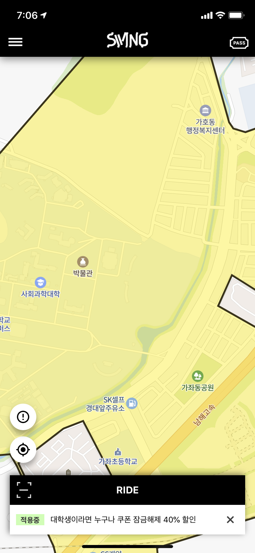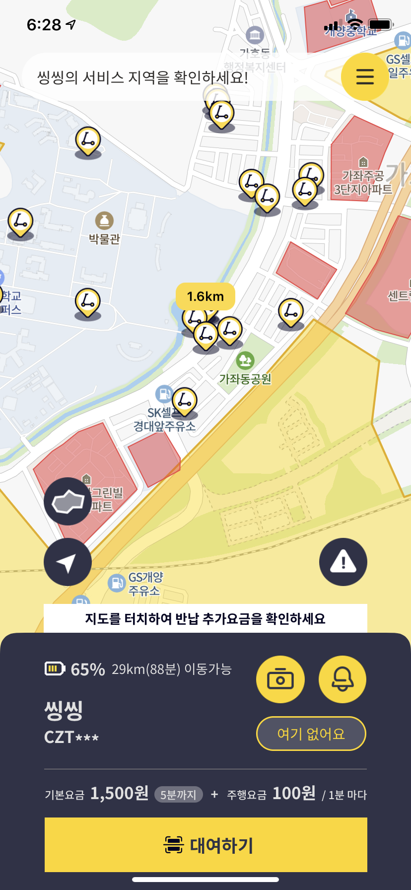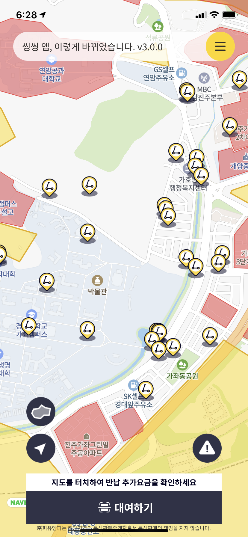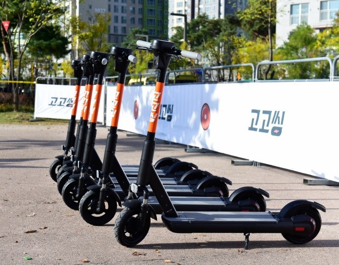 보통 이렇게 생겼습니다. 제 기억으로는 진주에 처음으로 도입된 공유킥보드 회사이고요.