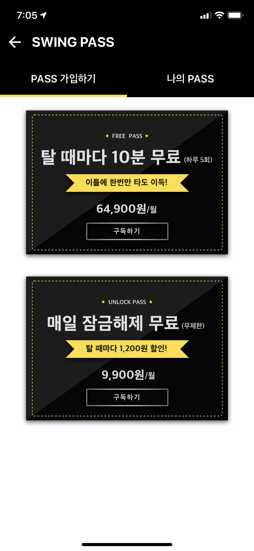 아마 씽씽이였나요? 2020년 1월에 씽씽패스라고 2020명에게만 구독형으로 뿌린것으로 알고 있는데, 정식으로 들어왔으면 좋겠네요!